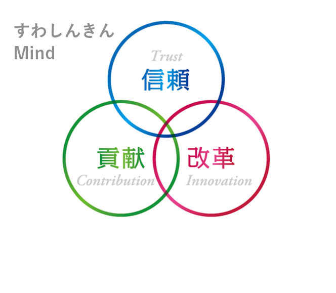 すわしんきんMindの柱は「信頼」「貢献」「改革」から成り立っています。