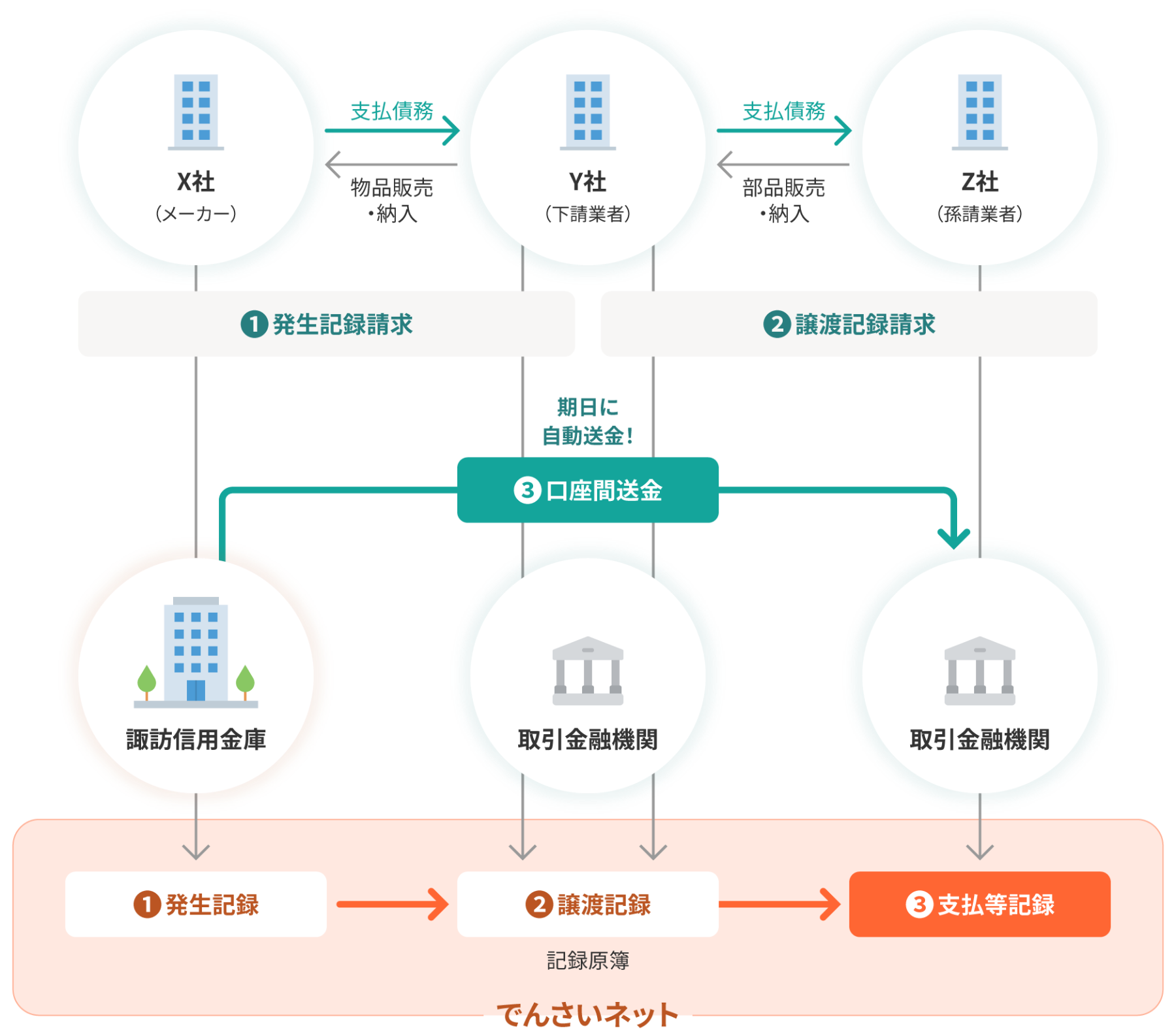 債務者の場合、支払期日に決済口座から債権金額が自動的に引き落とされ、為替発信により債権者へ支払われます。決済口座の残高が不足している場合は支払不能となりますので、支払期日前に十分な残高をご用意ください。