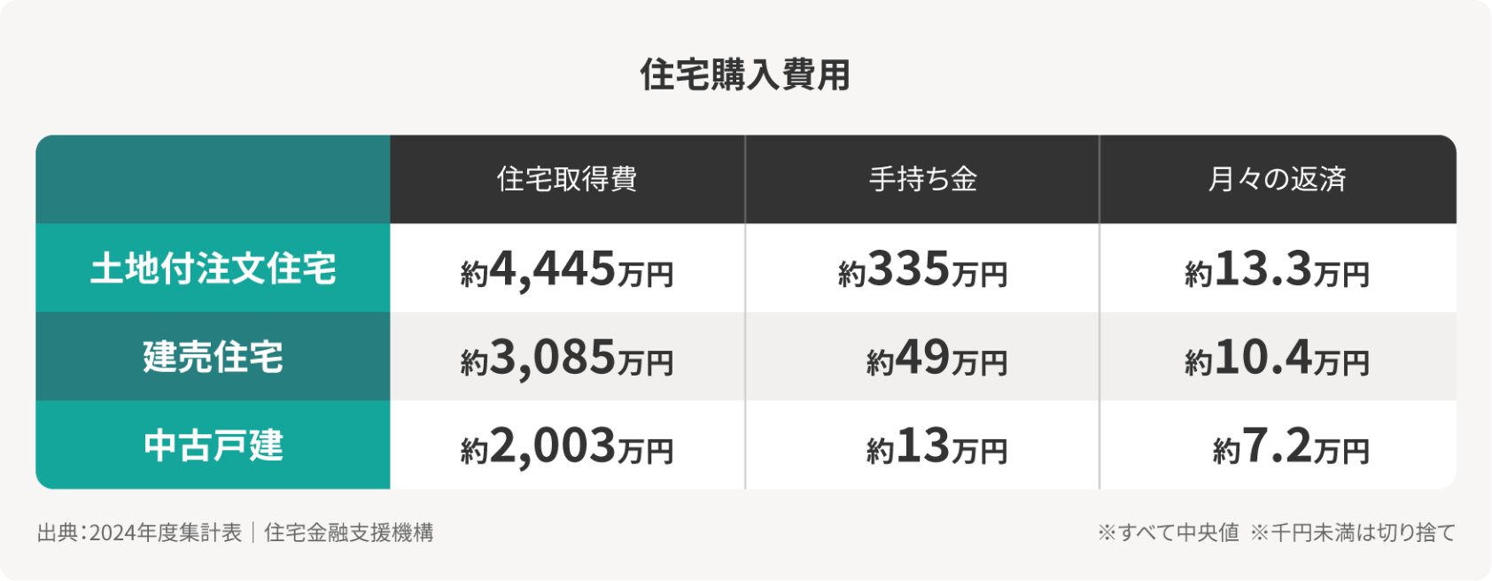 希望の住宅タイプによって購入費用は異なります。大きな買い物ですので、無理のない資金計画をきちんと立てることが大切です。