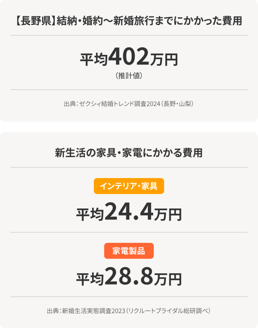 結婚後の新生活をはじめる際には、引っ越し費用や家賃・敷金など新居の準備にお金がかかることも想定しておきましょう。