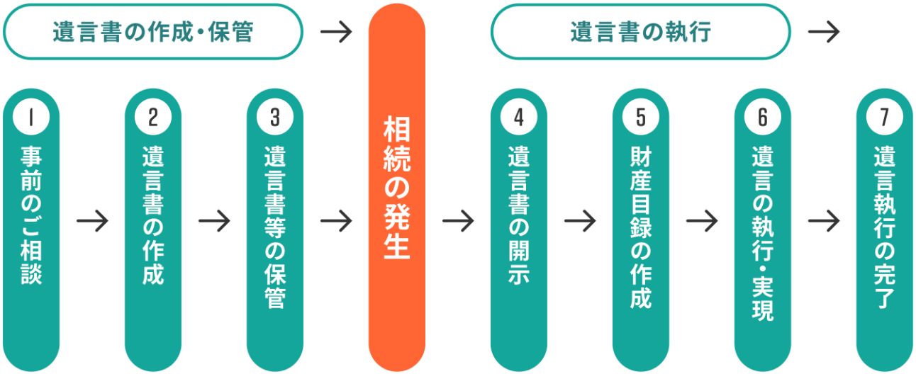 遺言書作成のお手伝いから保管・管理、遺言の執行まで一貫してサポートいたします。