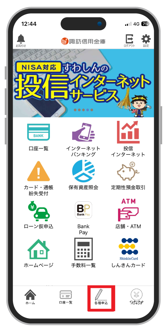 窓口または諏訪信用金庫アプリからお申込みいただけます。